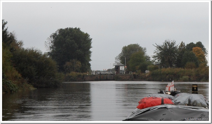 We penned down through Haddlesey Lock shortly after half-ten, heading upstream on the River Aire. The level had dropped another three or four inches overnight, but was still in the amber zone.