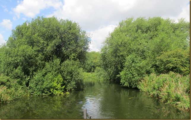 This canal section runs between several worked-out gravel pits. Those on the left, west, side are now part of Watermeade Park.