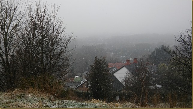 The skies cleared as we left the bottom lock, but not before they dumped another snow shower on us.
