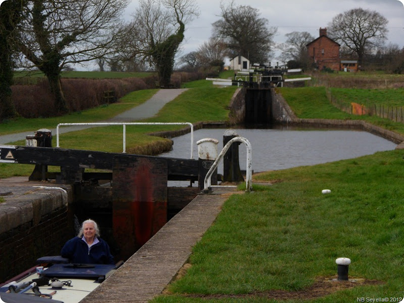 We caught up with boats again at Church Minshull Lock, Chas was just taking M2L in as we arrived, and a solo boater had slotted in between. I locked the single-hander down, then we followed on.
