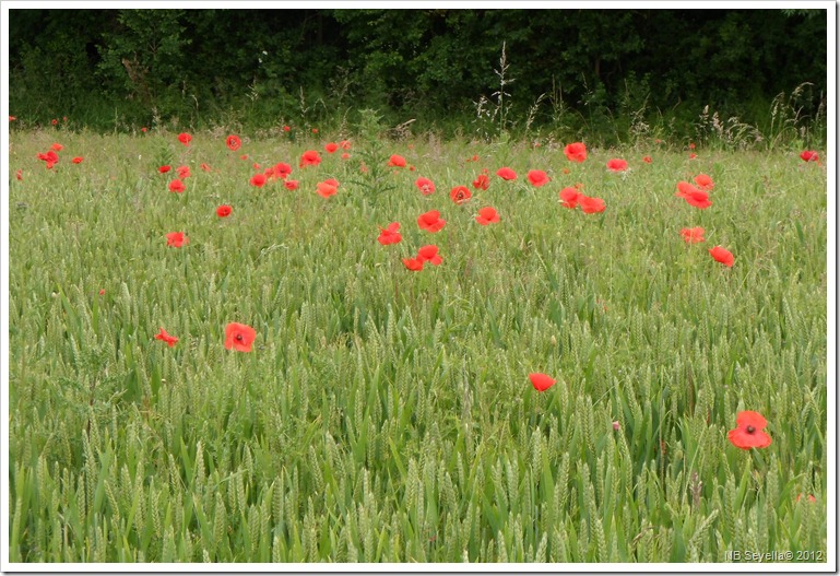 Poppys in cornfield