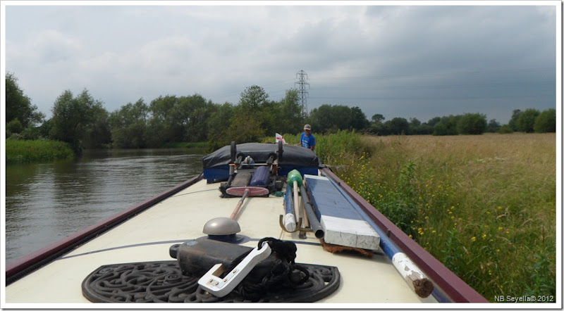 I started looking for spot to moor; I’d encouraged George and Carol to move today and I’d not be flavour of the month if we all got wet through. I’d almost reconciled myself to getting to Swinford Bridge when a suitable looking spot appeared on the north bank. Gently drifting in, it was deep enough and the bank was just the height of the gunwale, so that’d do.