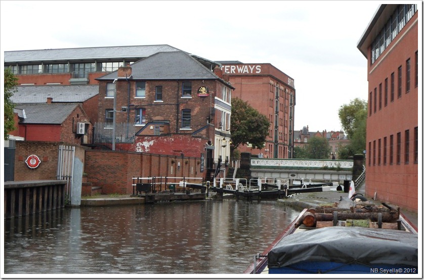 Below the lock there’s extensive building work going on, new high rise apartments replacing old warehousing, then there’s a sharp right turn just beyond a bridge, where a short arm used to head towards the Lace Market.