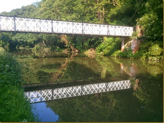 Meg’s walk this morning, reflections of the lattice footbridge at Barnton…